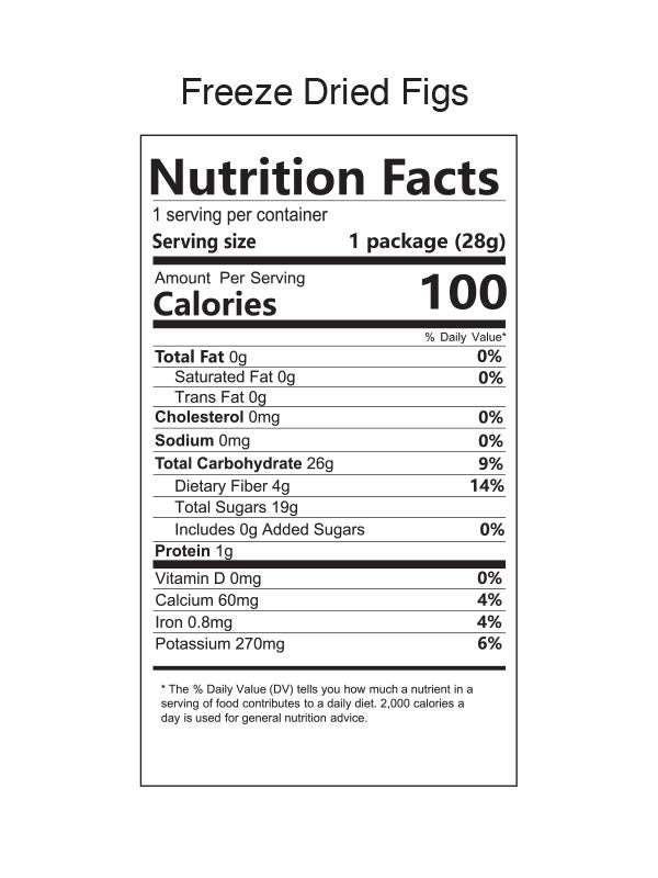 Figs are a nutritional powerhouse! Freeze drying locks in those nutrients. Fiber, vitamins, antioxidants, calcium, magnesium and potassium. How can a fruit so sweet contain so much goodness!?